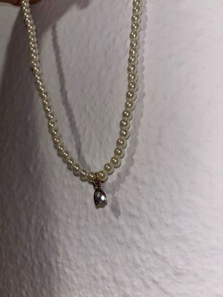 Elegante collar de perlas con un delicado colgante. - Cierre dorado. - Perlas de color blanco. - Colgante con detalle brillante.