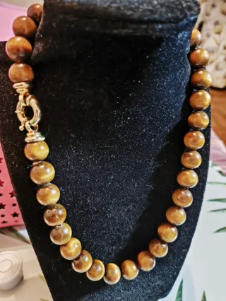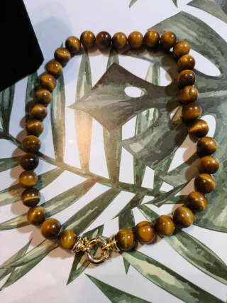 Elegante collar con cuentas de ojo de tigre y un cierre de plata. - Cuentas de ojo de tigre. - Cierre de plata. -Cierre de nudo marinero