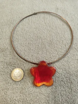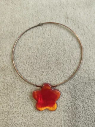 Collar con colgante en forma de estrella con acabado nacarado en tonos rojos y naranjas. Cadena fina y rígida tipo gargantilla. Mira mi perfil, hay muchas cosas interesantes a buen precio Consúltame el tiempo de envío. Hay veces que por mi trabajo no lo puedo enviar en el plazo que marca la aplicación.