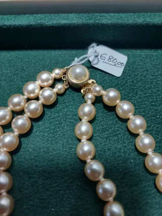 Elegante collar de perlas de doble vuelta. Su diseño sin cierre lo hace muy versátil. - Perlas de color blanco brillante de 9mm. - Doble vuelta. - 80cm. Venta por cierre de joyería. 00429