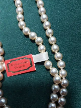 Elegante collar doble de perlas de la marca Bohemian Pearls. Un accesorio clásico que aporta un toque de distinción. - Perlas de color blanco nacarado. - Cierre dorado con media perla. - 59cm. - Perlas de 8mm. Venta por cierre de joyería. 00373