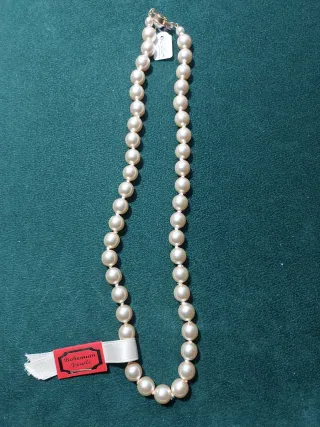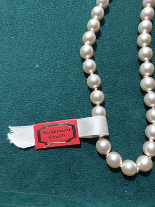Elegante collar de perlas de la marca Bohemian Pearls. Un accesorio clásico que aporta un toque de distinción. - Cierre dorado. - Perlas de color beige. - 65.5 cm - Perlas de 8mm. Venta por cierre de joyería. 00372