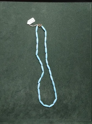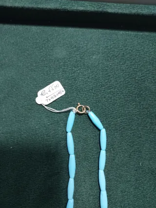 Elegante collar con cuentas de turquesa y cierre dorado. - 24 cuentas de diseño alargado y pulido. - Cierre de mosquetón chapado en oro. - 37.5cm Venta por cierre de joyería.
