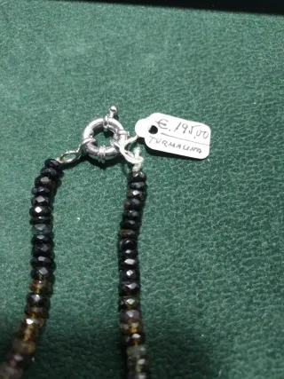 Elegante collar hecho con cuentas de turmalina. - Cuentas facetadas. - Cierre rodiado. - 37cm. Venta por cierre de joyería.