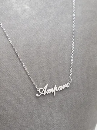 Elegante collar con el nombre Amparo en acero quirúrgico. Un accesorio delicado y moderno. - Diseño de nombre caligráfico. - Material hipoalergénico.