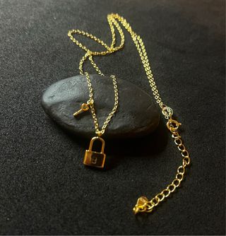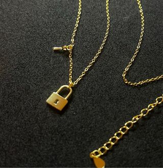 Elegante collar de plata 925 con un diseño de candado y llave. - Material: Plata 925. - Acabado: Dorado.