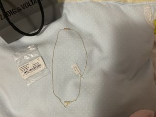Collar de la marca Zadig & Voltaire con un diseño de guitarra eléctrica. Es oro al 95% (925). Su precio original es de 140€ aunque yo lo compré a 93€. Incluyo la bolsa de Zadig que se ve en la imágen.