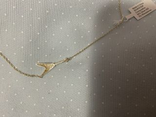 Elegante collar con cadena de plata y un llamativo colgante. - Diseño de pájaro con alas extendidas. - Detalle de pluma y borla. - Abalorio negro. - Cierre de mosquetón.
