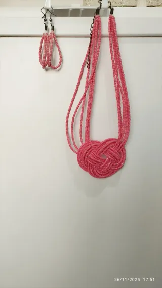 Conjunto collar y pendientes rosa