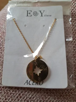 Elegante collar de la marca E&Y Elena con un diseño de brújula. - Cadena y colgante de acero. - Color dorado. No se quita el dorado aún mojando.