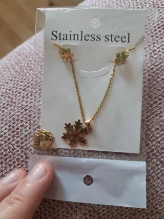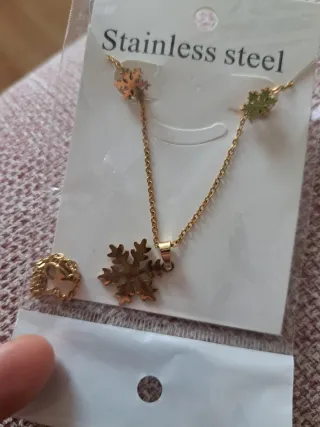 Conjunto de collar y pendientes con diseño de copo de nieve. - Material: Acero inoxidable. - Diseño delicado. No pierde el dorado ni aún mojandose.