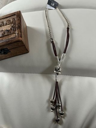 Collar con un diseño de colgante circular y cordón.nuevo a estrenar. - Colgante con detalles intrincados. - Cordón de cuero marrón.