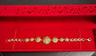 Elegante pulsera de acero inoxidable con un diseño delicado. - Acabado en tono dorado. - Elaborada con acero inoxidable.