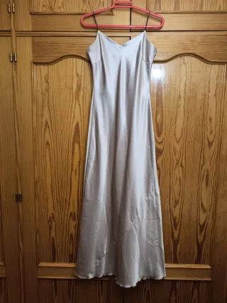 Elegante vestido largo de estilo lencero, perfecto para ocasiones especiales. - Diseño con tirantes finos. - Tejido satinado con caída. - Largo hasta los tobillos. - Detalle de encaje en el bajo.