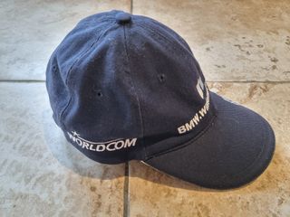 Gorra del piloto colombiano Juan Pablo Montoya del equipo BMW Williams F1 Team de la temporada 2001 del Campeonato del Mundo de Fórmula 1. De su temporada de debut en la F1, donde lograría además su primera victoria en el GP de Italia y 3 podium más con el Williams - BMW FW23. Gorra de alta calidad, logos bordados del emblema de la escudería al frente, de la firma del piloto en la visera, de Worldcom en ambos lados y detrás su dorsal. Cierre de tela con la web del equipo bordada. Merchandising oficial. Como nueva. #williams #williamsf1 #williamsf1team #bmw #bmwwilliams #monyota #juanpablomontoya #colombia #worldcom #f1 #formula1