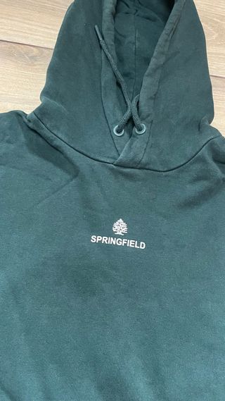 Sudadera con capucha de Springfield en color verde. Presenta un diseño minimalista con el logo de la marca. - Logo de Springfield bordado en el pecho. - Bolsillo tipo canguro. - Puños y bajo elásticos.