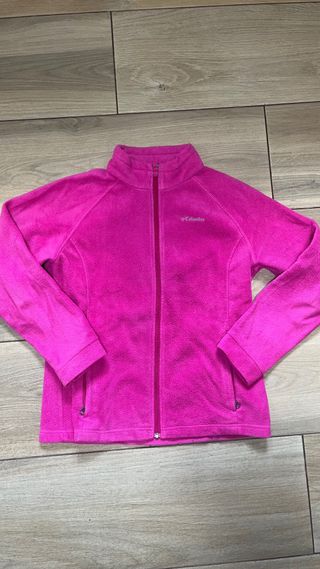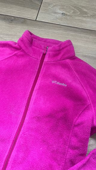 Forro polar Columbia de color rosa, ideal para mantenerte abrigado. - Es XL pero talla como L - Cremallera completa. - Cuello alto. - Bolsillos laterales con cremallera.