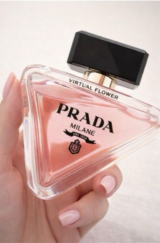 Este es un frasco de colonia Prada Paradoxe Virtual Flower. - Fragancia floral. - Sensación: fresca, luminosa, suave y elegante, ideal para primavera y verano o día a día. - Diseño triangular icónico de Prada. - Tapa negra y detalles dorados. - frasco de 90ml