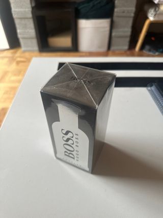 Frasco de colonia Hugo Boss en color negro. Presentación elegante y moderna. No se ve la marca por derechos de autor - Diseño cilíndrico. - Tapa metálica. - Incluye caja.