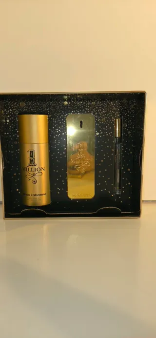 Set de fragancia Paco Rabanne 1 Million. - Incluye un spray desodorante. - Incluye un vaporizador de viaje. -Incluye la colonia 1 million. - Presentado en un estuche dorado de rabanne.