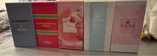 Conjunto de cinco colonias de la marca Prady. - Colonia Blueberry's By Prady. - Colonia Blueberry's Woman. - Colonia Dulce Chicle. - Colonia Vanilla Toscana. - Colonia YANI. 6,50 la unidad VENDO AL POR MAYOR TMB