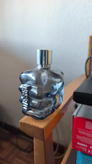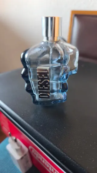 Bote de colonia de la marca Diesel. Vacío. Para rellenar o decorar. - Envase de cristal azul. - Detalles plateados.