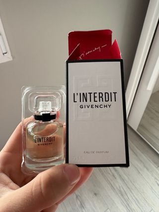 Fragancia Givenchy L'Interdit en presentación Eau de Parfum. - Diseño elegante en caja blanca y negra. - Contiene el logo de Givenchy grabado. -10ml -halarme sin ningún compromiso, es totalmente verdadero y nuevo solo abierto