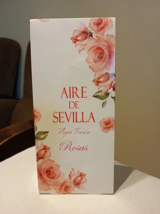 Fragancia femenina Aire de Sevilla con aroma a rosas. - Presentación en Agua Fresca. - Diseño floral con rosas. - Envase de color blanco y rosa.