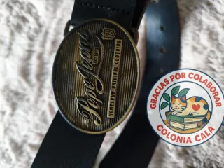 Cinturón de cuero negro con una hebilla ovalada de estilo vintage. - Hebilla metálica con logo grabado. - Estampado Pepe Jeans Est. 1973 Homespun Original Clothing. - Correa de cuero. - Cierre de hebilla. - Dispones de más artículos en nuestro escaparate solidario. Todo lo recaudado va destinado a gestionar la Colonia Cala