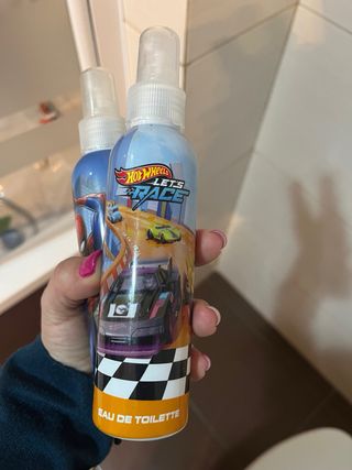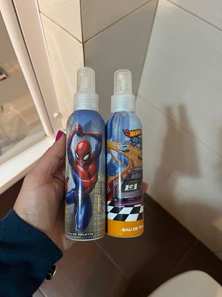 Lote de dos colonias infantiles con diseños de Spiderman y Hot Wheels. - Colonia con diseño de Spiderman. - Colonia con diseño de Hot Wheels.