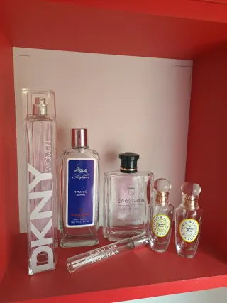 Conjunto de frascos de perfume vacíos de varias marcas reconocidas. Ideales para coleccionistas o para reutilizar. - Frascos de DKNY, Alvarez Gomez, CROSSMEN, VICTORIO & LUCCHINO y ROCHAS. - Diseños variados y elegantes. TODOS X 5EUROS!!!