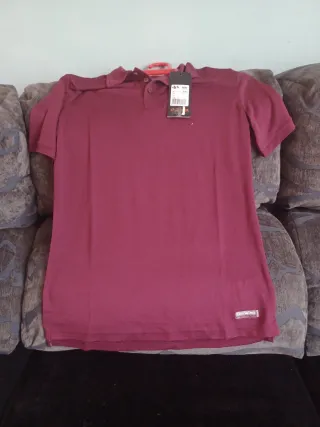 Polo de manga corta en color granate -Muy suave y fresquito - Cuello con botones. - Etiqueta de marca en la parte inferior.
