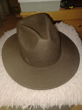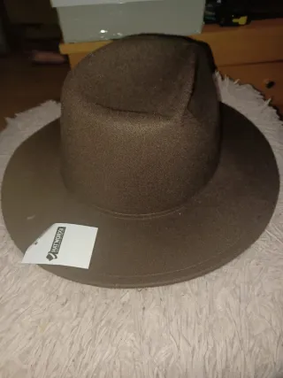 Sombrero estilo vaquero en tono marrón. Un accesorio clásico para completar tu look. -talla 57 - Material de fieltro. - Ala ancha. - Copa con forma.