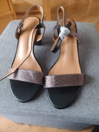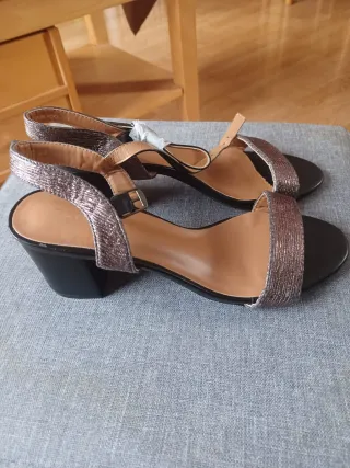 Elegantes sandalias, perfectas para añadir un toque de brillo a tu atuendo. - Diseño con tiras metalizadas. - Cierre de hebilla. - Tacón medio.