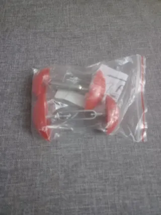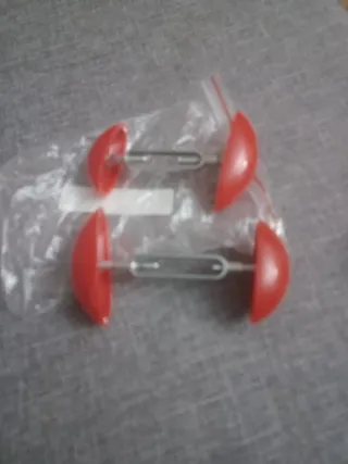 Par de adaptadores para zapatos en color rojo. - Diseño en forma de media esfera. - Varilla metálica central.