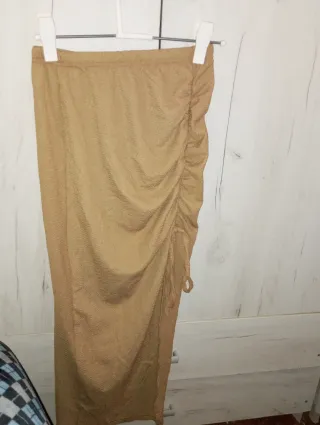Traje de verano beige drapeado