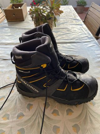 Botas de nieve Salomon en color negro con detalles amarillos. Perfectas para mantener los pies calientes y secos. - Tecnología Thinsulate Insulation. - Suela de goma adherente. - Cierre con cordones. Se han usado muy pocas veces