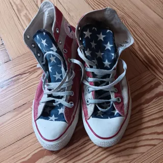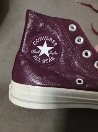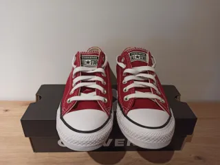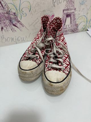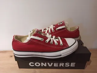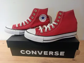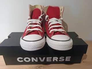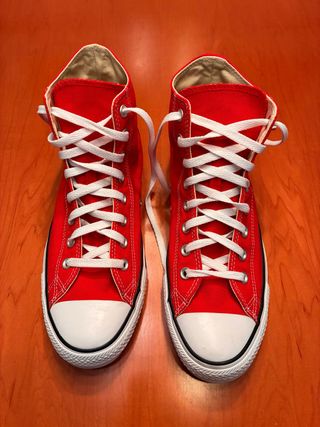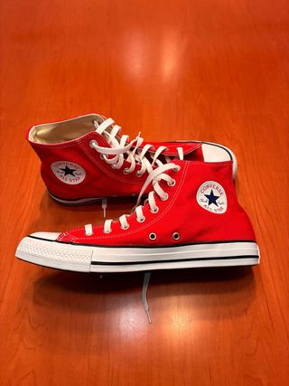 Zapatillas Converse All Star de color rojo, talla 38, a estrenar, con su caja original. - Cierre con cordones blancos. - Puntera reforzada. - Suela de goma blanca.