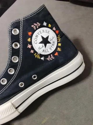 Zapatillas Converse All Star de caña alta con un diseño único. - Color base negro. - Bordado floral multicolor alrededor del logo. - Logo circular de Converse All Star.