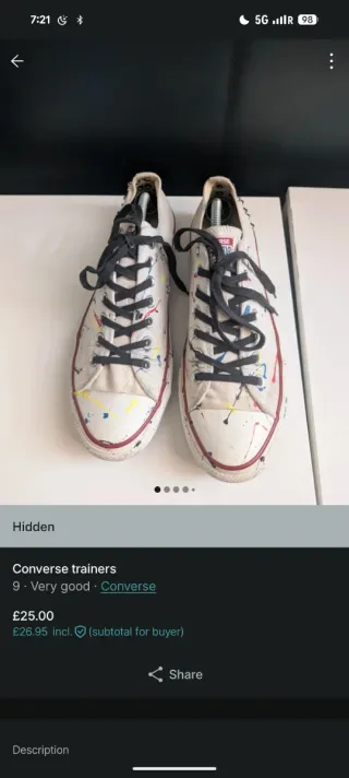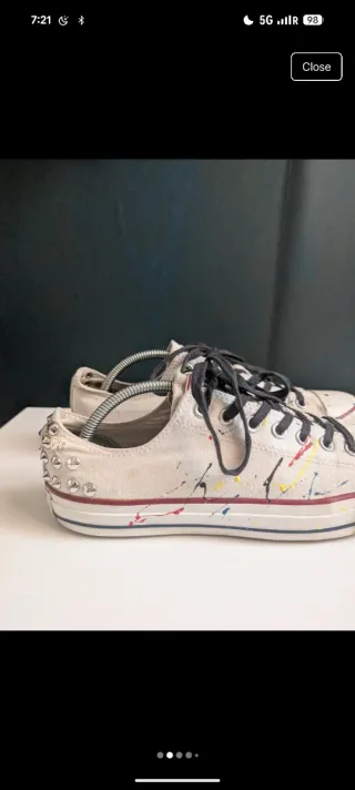 Zapatillas Converse All Stars con un diseño único salpicado de pintura. - Color principal blanco con detalles multicolor. - Talla 43.