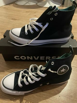 Zapatillas altas tipo bota de la marca Converse. - Color principal negro con detalles en verde. - Cierre con cordones blancos. - Logo de Converse en el lateral. están a estrenar. no se han utilizado nunca.