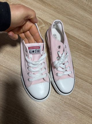 Zapatillas Converse All Star de color rosa. - Diseño clásico de caña baja. - Cordones blancos. - Puntera reforzada blanca. - Suela de goma blanca. vendo por quedar grandes que uso una 39