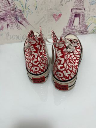 Zapatillas altas Converse con un llamativo diseño. - Estampado de logo blanco sobre fondo rojo. - Cierre de cordones. - Suela de goma blanca.