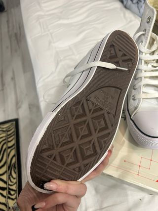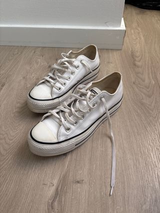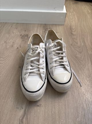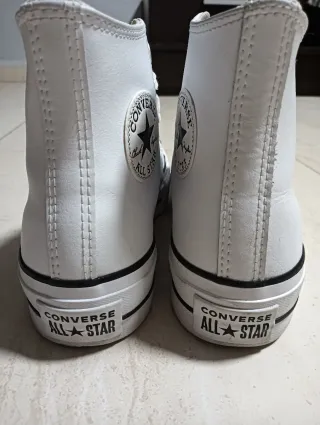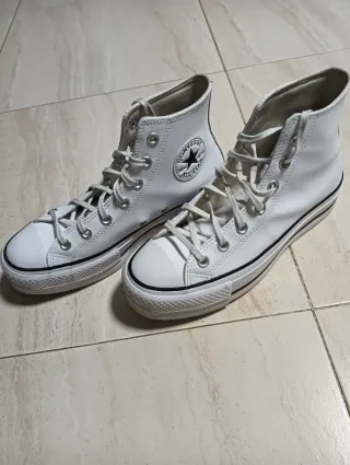 Converse All Star Autenticas. Usadas, pero están muy bien conservadas. Es una buena inversión porque son Converse Originales compradas en 120€ y las vendo en 35€ ✔️Tiene amortiguación de EVA que te proporciona comodidad y ligereza durante todo el día. ✔️Te hacen ver mas alta mientras te aportan comodidad y seguridad en cada pisada. ✔️ Lucen genial, su estilo no pasa desapercibido vaya donde vayas. ✔️ Tiene suela de goma dentada para un look atrevido. ✔️Envio rapido. Hazlas tuyas antes de que alguien más lo haga! Compradas en 120€