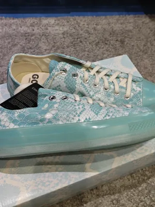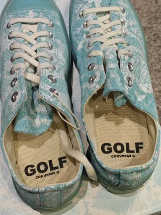 Zapatillas bajas Converse Golf le Fleur con un diseño único. Tyler the Creator. Exclusiva. - Estampado de encaje en color blanco sobre base verde azulado. - Suela translúcida en tono verde azulado. - Cordones blancos.