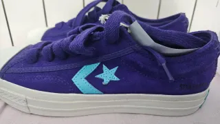 Zapatillas Converse Star Player de ante en llamativos tonos morado y turquesa. Un diseño clásico con un toque moderno. - Material exterior de ante. - Detalle de estrella y chevron en turquesa. - Suela de goma blanca.