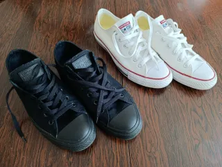 Dos pares, Chuck Taylor modelo clásico blanco usado solo dos veces para salir a cenar y modelo All Black usado unas 4-5 veces de diario. Están completamente nuevas, las vendo porque me compré los dos pares a la vez pero por mi tipo de pie me hacen daño. Hago envíos por Correos a toda España. Pregunta sin compromiso, gracias y saludos.