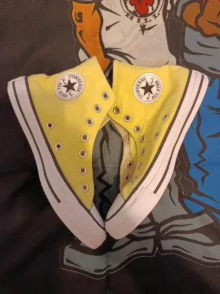 Zapatillas altas Converse All Star en llamativo color amarillo. Un clásico del estilo urbano. - Diseño de caña alta. - Ojales metálicos para cordones. - Suela de goma blanca. - Logo circular de Converse en el lateral. - Unisex - No pone talla medi la zapatilla 25 cm