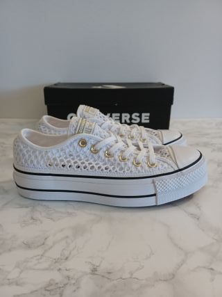 CONVERSE All Star Lift, talla 37.5 plantilla 24cm suela 4cm, malla Blanco