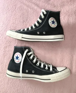 Zapatillas 👟 Converse altas de lona en color negro. - Cierre con cordones blancos. - Detalle de logo circular en el lateral. - Suela de goma blanca. Fue un regalo 🎁 y me las he puesto sólo un par de veces. Las vendo por falta de uso.